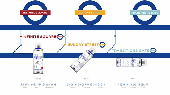 Три стильные современные новинки от итальянского бренда Step Aboard посвящены трем воображаемым станциям лондонского метро. Вдохновение создателям ароматов подарили три работы художниц, созданные специально для этого проекта.