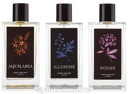 Дебют британской нишевой линии Nancy Meiland, основанной парфюмером Нэнси Мейланд, ознаменовался выпуском трех новых релизов - Rosier, Aquilaria и Illuminé, включенных в коллекцию Paper Leaf. Трио издано в прозрачных 100-миллилитровых флаконах строгого классического дизайна, отличающихся только изображением доминирующего растения на черной этикетке.